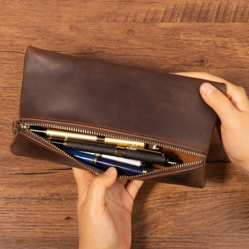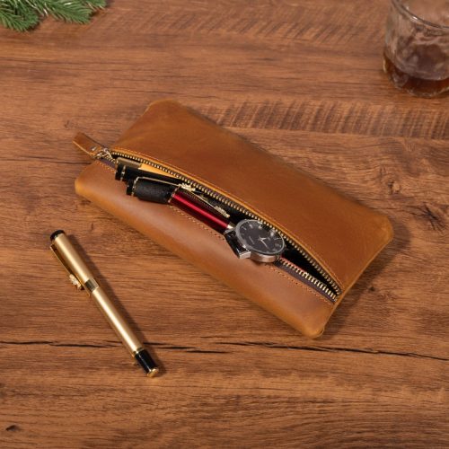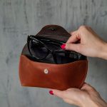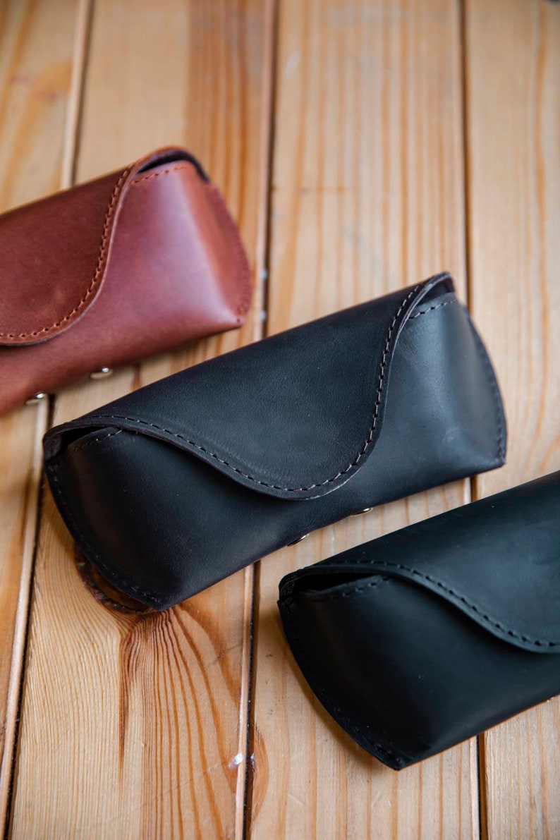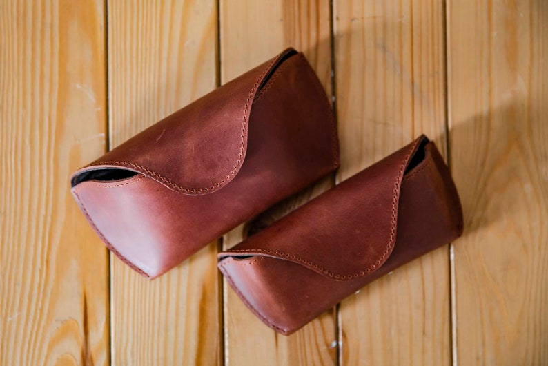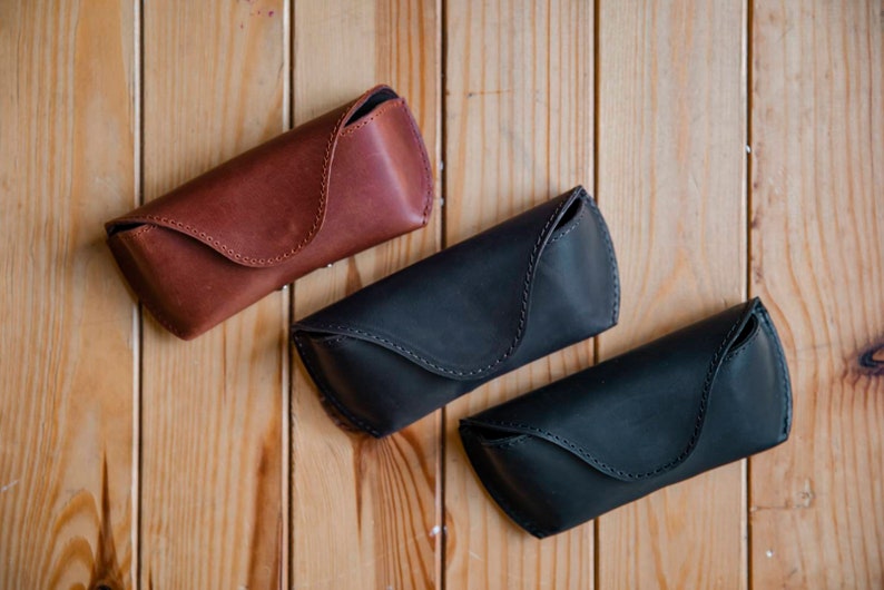 This leather glasses case is possible to order in two sizes and it fits most eye glasses and sun glasses.