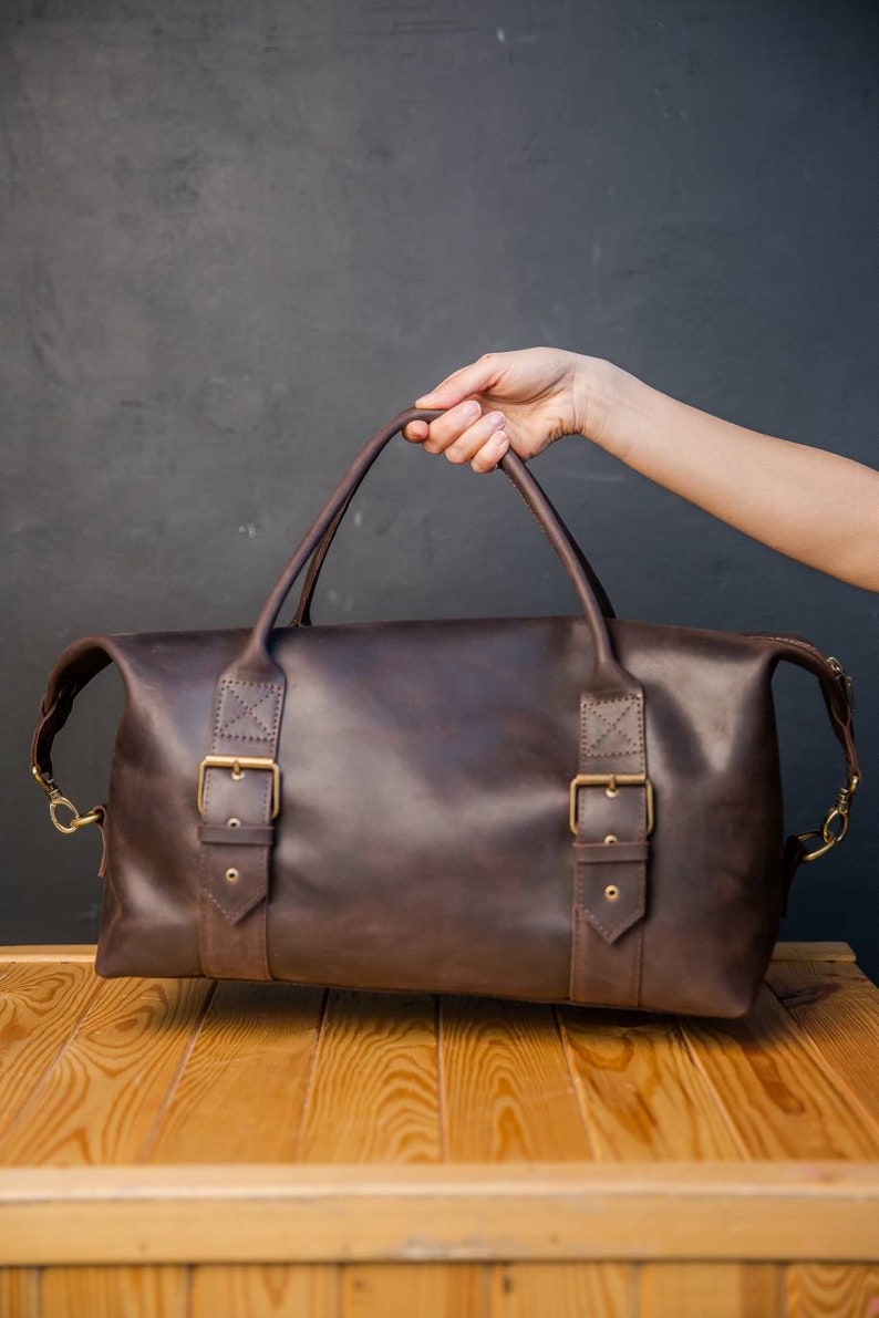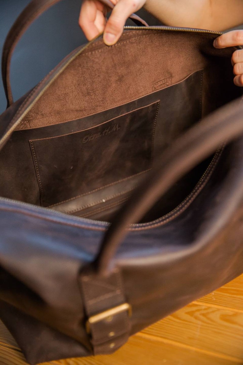 The leather gets softer after some time, darkens slightly and gets a beautiful patina. Since this is a natural leather ttravel bag, small bumps such as scars, stitches, neck marks etc. are not reworked. They emphasize the nature of the leather and are a proof of quality, not a quality defect.
