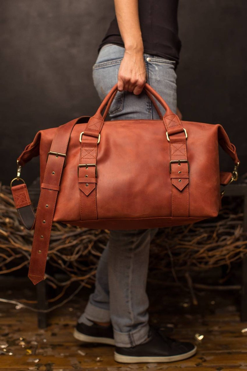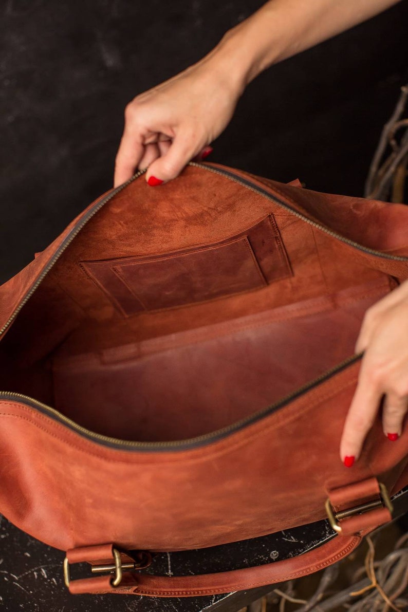 The leather gets softer after some time, darkens slightly and gets a beautiful patina. Since this is a natural leather ttravel bag, small bumps such as scars, stitches, neck marks etc. are not reworked. They emphasize the nature of the leather and are a proof of quality, not a quality defect.