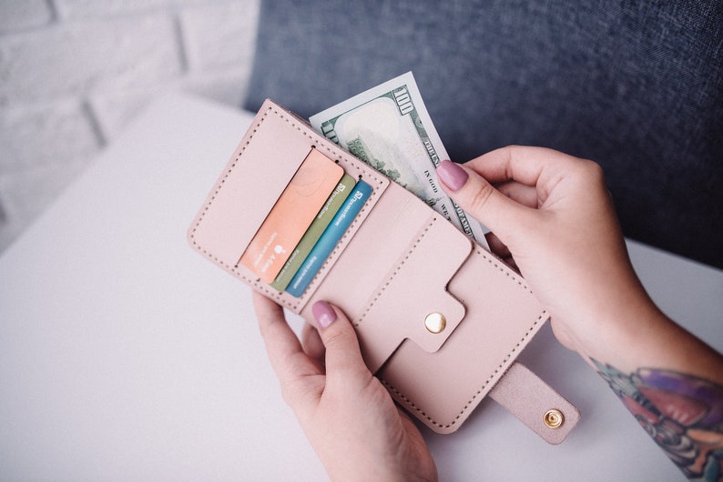 Light pink leather wallet, Pink leather wallet,Personalized Leather Wallet, Women’s wallet, gift for girl,bifold leather wallet, Card wallet